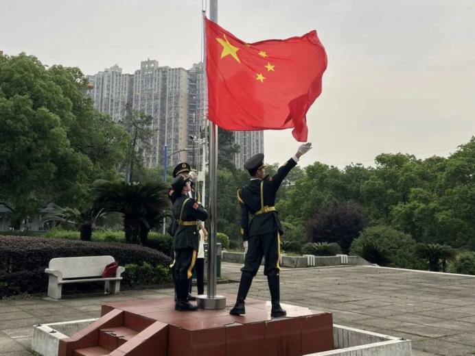 清脆的口令划破晨曦,庄严肃穆的升旗仪式拉开序幕。国旗队成员迈着整齐的步伐,护卫着鲜艳的五星红旗走上升旗台。他们的步伐铿锵有力,每一步都诉说着对国家、对民族的热爱与忠诚。在雄壮的国歌声中,鲜艳的五星红旗缓缓升起,迎风飘扬。在场师生神情肃穆,向国旗行注目礼,共同见证这神圣的一刻。