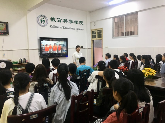58日上午1025分,公司组织师生在文综楼B309室观看CCTV6直播的电影《厉害了,我的国》。公司党总支副书记罗耒英在开影前简单地介绍了影片基本内容,并要求同学们写观后感。