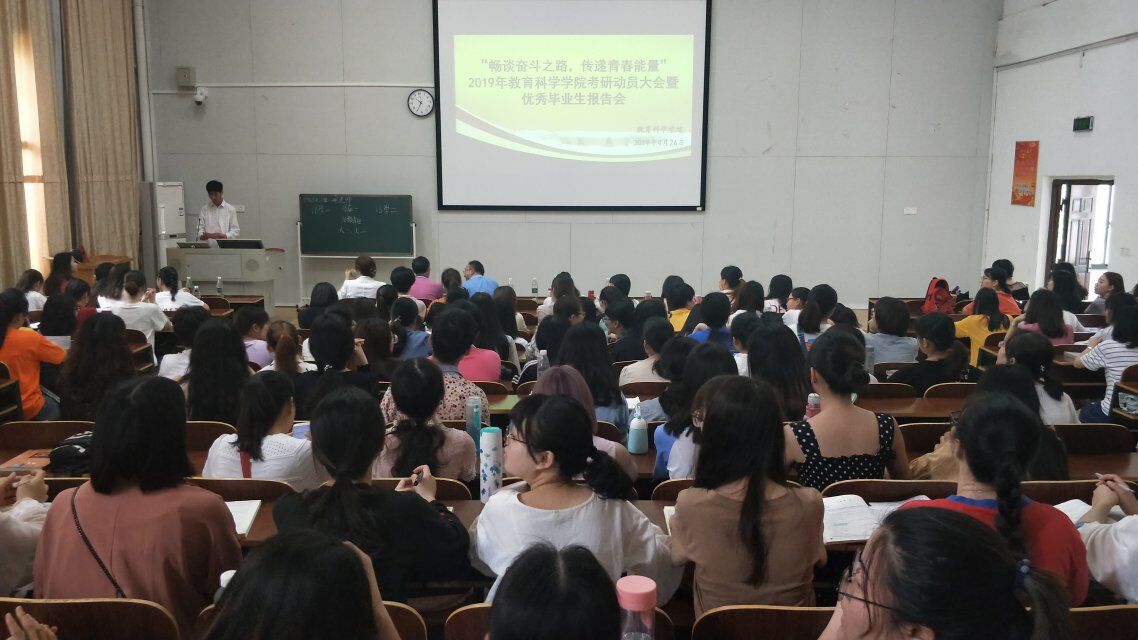 4月26日上午10:30,公司在外语楼110室举行2019年考研动员大会暨优秀毕业生报告会。大会邀请了2015级成功考研的优秀毕业生代表来分享考研经验,公司党总支书记陈君生、党总支副书记罗耒英、副经理郑志辉和员工辅导员王有斌出席会议,2016级全体员工参加此次会议。