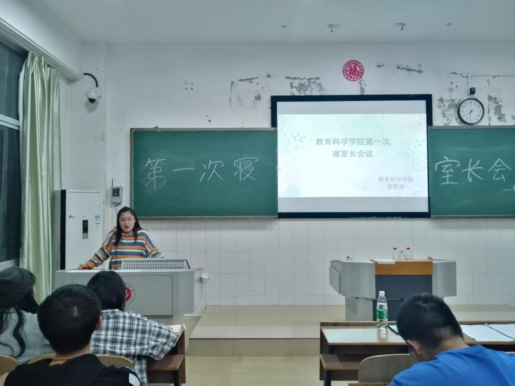 宿管部部长陆芊芊系统全面地讲述了寝室管理要求,强调了寝室管理的奖惩制度,让各寝室长进一步熟悉了寝室管理工作。