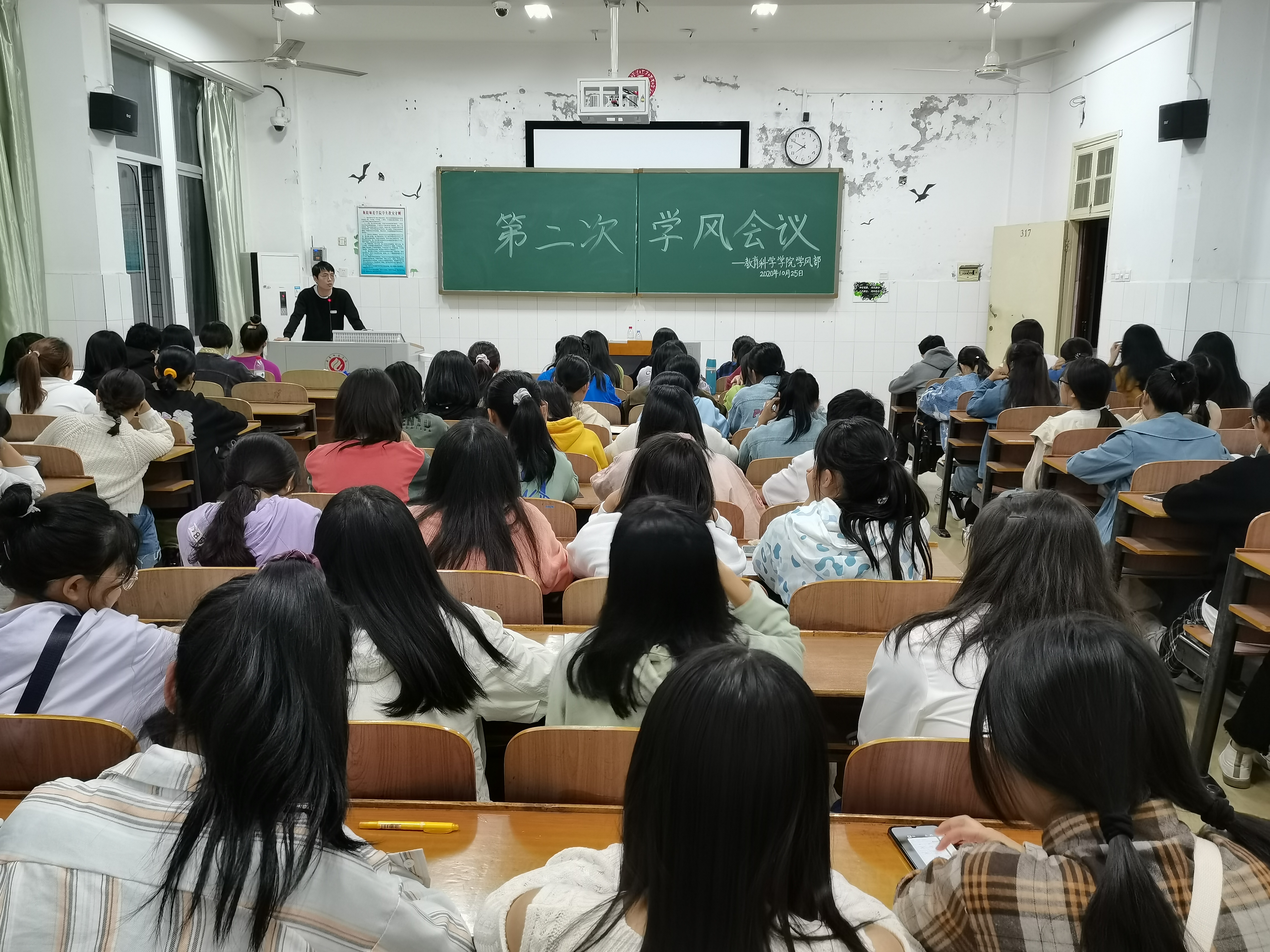 为改善各班级学习风气,协调学委和学风督察员工作,营造良好的学习氛围,2020年10月25日晚,公司第二次学风会议在文A307教室举行。本次会议由学风部助理杨静主持,辅导员杨威老师、员工分会副主席周心悦、学风部部长文雅出席,18至20级各班学委、20级各班班长、全体学风督察员和早晚自习督察员参与会议。