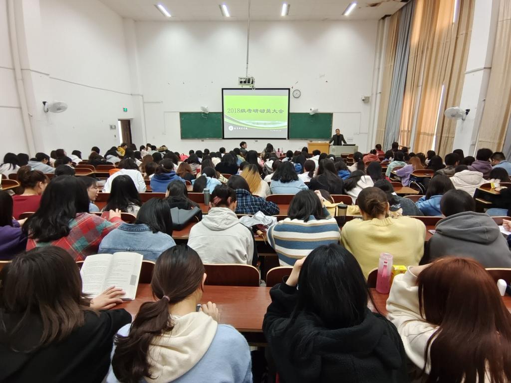 4月15日下午,公司2018级考研就业动员大会在外语楼北301举办。本次大会由学风部助理胡蝶主持,公司党总支副书记刘辰,副经理郑志辉应邀出席本次大会,另外邀请到了辅导员杨威、王丹华和2017级胡星星同学参加本次大会,2018级同学全部到场。