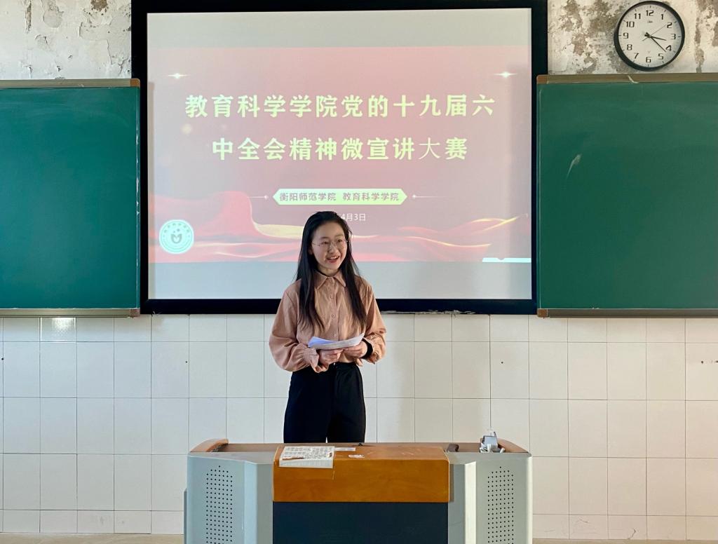 比赛现场,各位选手身着正装,热情洋溢、慷慨激昂地进行演讲,或借用丰富的表情体态,或借助幻灯片和背景音乐……每一位选手紧紧围绕党的十九届六中全会精神阐述自己的体会和感悟。来自2020级应用心理学一班的选手胡蝶结合当下热点谈到:“世界百年未有之大变局和新冠肺炎疫情全球大流行交织影响,国内新冠肺炎疫情防控和经济社会发展任务繁重,正是因为坚决维护以习近平同志为核心的党中央的领导,党和国家各项事业才取得了新的重大成就,不断开辟中华民族伟大复兴的光明前景。”
