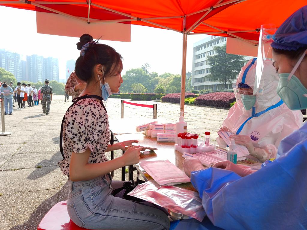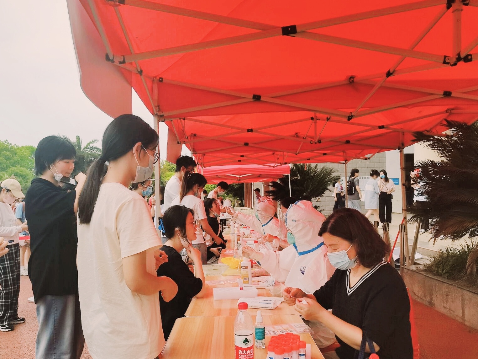 采样现场设有等候区登记区和采样区,并设置了5个核酸检测通道。同学们在书记、辅导员老师和志愿者的组织下,在等候区等待检测。全院师生严格遵守防疫规定,全程佩戴口罩,以班级为单位有序排队等候,配合完成登记、采样等相关流程。整个核酸检测过程组织科学、保障有力、防护到位、井然有序。在师生们齐心协力和积极配合下,公司于4月21日完成了全员核酸检测工作。