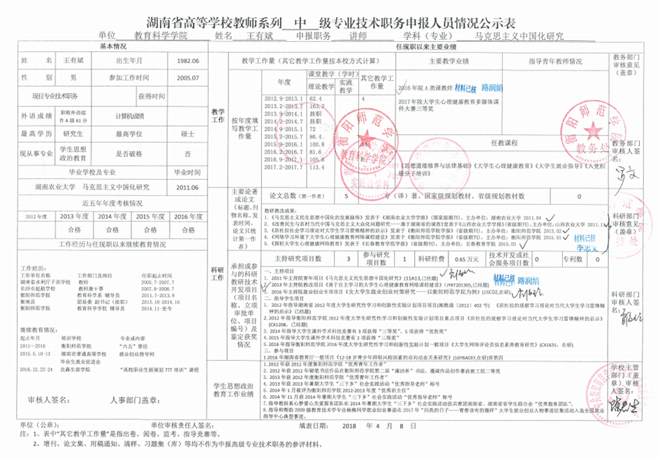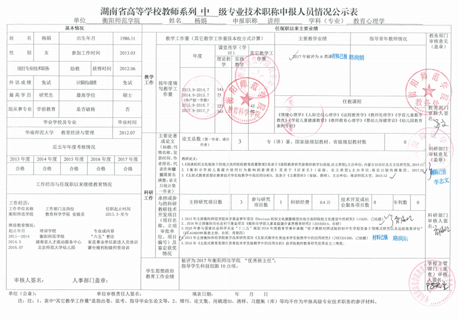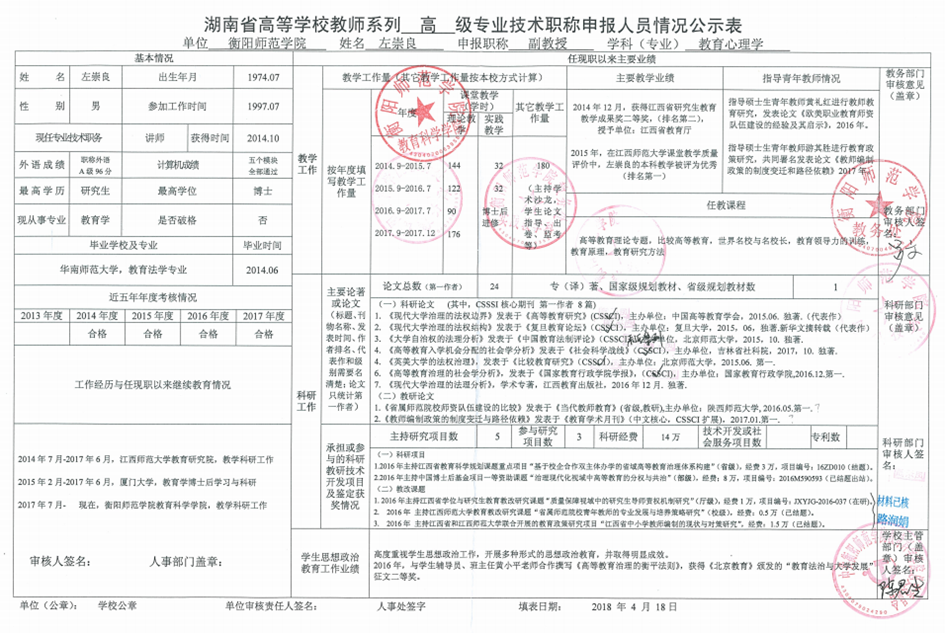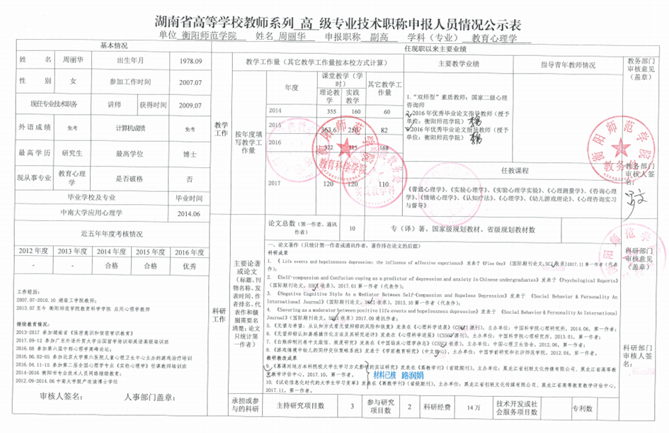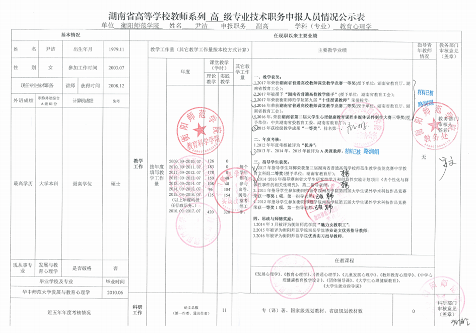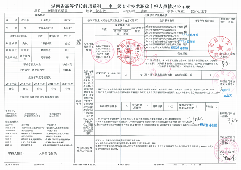 附件二:湖南省高等公司教师系列专业技术职务申报人员情况公示表