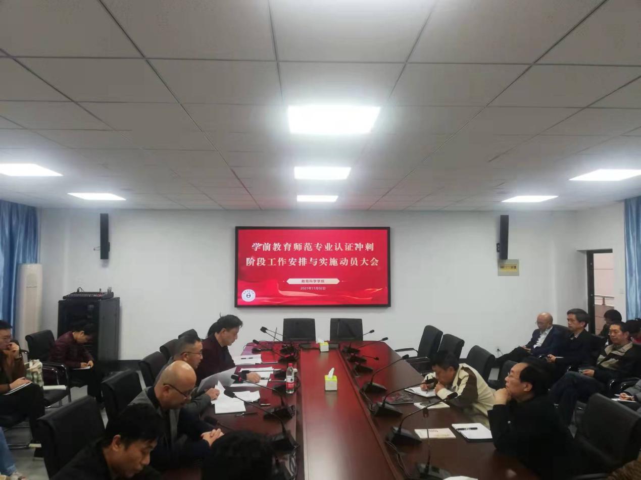 11月2日,MK体育全体教职工在行知楼四楼会议室召开学前教育师范专业认证冲刺阶段工作安排与实施动员大会。党总支书记谢伟华,经理郑志辉以及其他相关院领导分别在会上做了发言和部署。