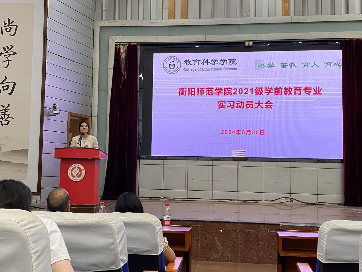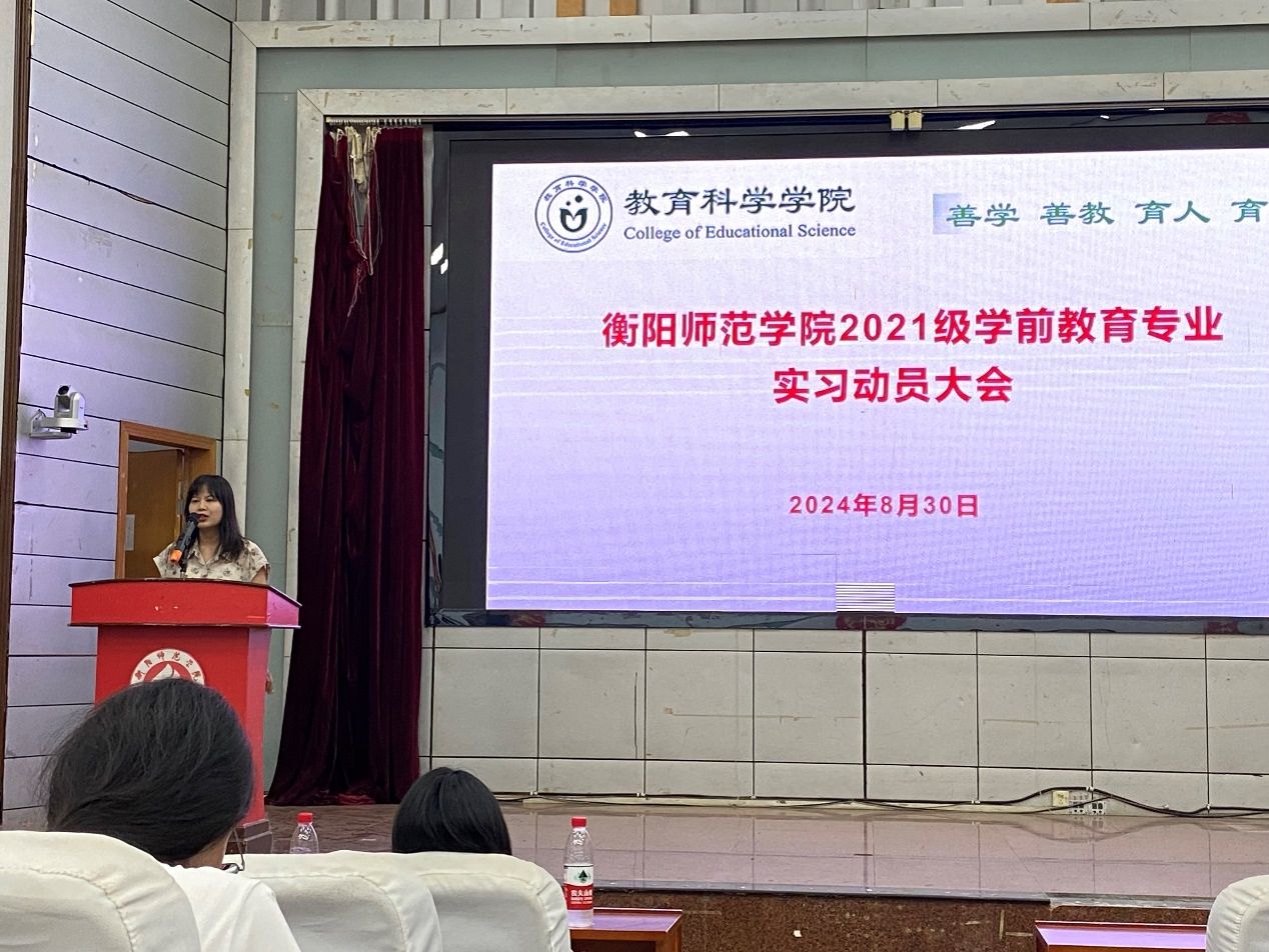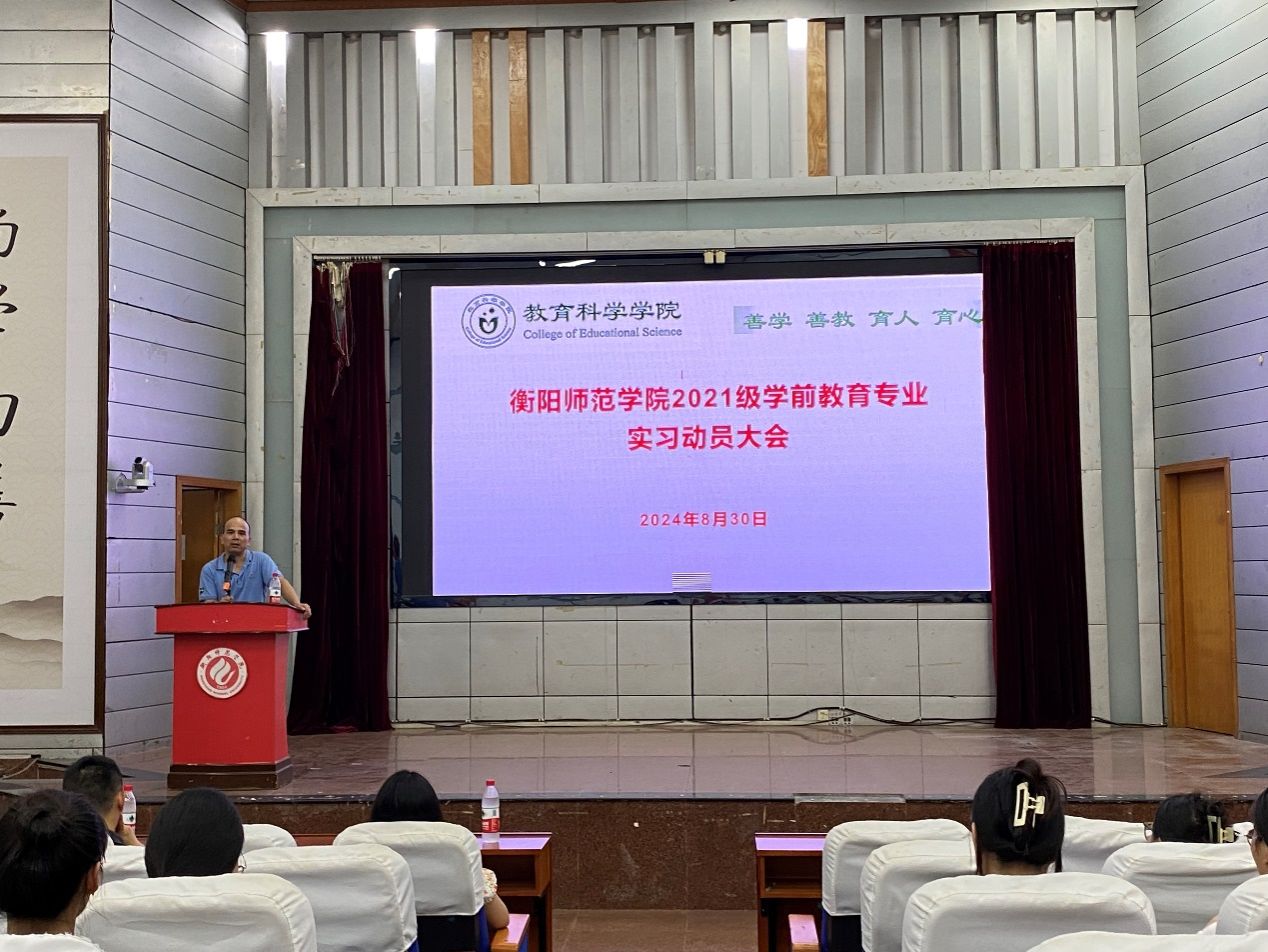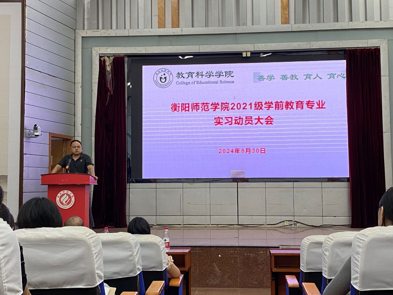 教育实习能帮助员工更好地理解和掌握所学知识,提高专业技能和实践能力,为未来职业生涯奠定基础,推动幼儿教育事业的发展。为做好教育实习前的各项准备,确保2021级学前教育专业教育实习工作顺利开展,2024年8月30日晚上,公司在西校区模拟法庭召开了教育实习动员大会。本次会议由刘嘉璐老师主持,公司教学副经理梁文明、童宏亮老师、2021级辅导员单胡杨老师、李凤辉老师、以及2021级学前教育专业全体本科生共同参加。