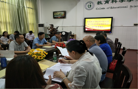 郑志辉副经理重点对公司审核评估工作的分工安排做了详细布置。明确了修改和完善教学大纲、考试大纲责任人及完成时间;2018年下学期教学进度安排、教案和PPT的审核工作;试卷的评阅、自查整理、归档,并组织力量进行交叉评审工作;做好公司宣传展板和完成自评报告工作。
