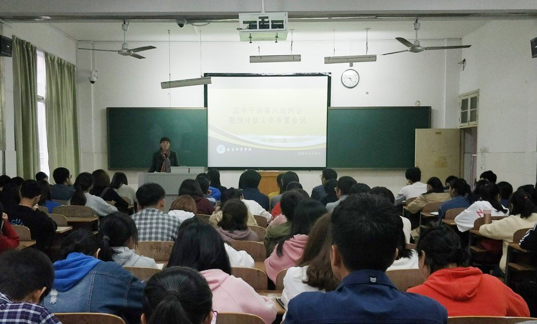 为迎接公司即将到来的本科教学审核评估工作,10月19日下午四点半公司在文科楼D栋303教室召开了团学干部第六次例会暨预评估工作布置会议。公司党总支副书记罗耒英、员工辅导员曹喜燕、王有斌及全体员工干部出席会议。