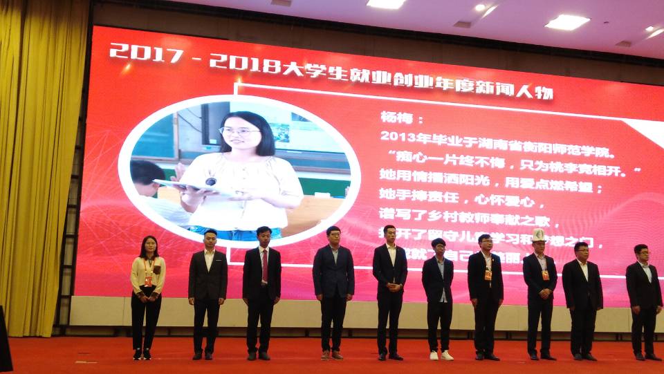 11月7日,全国2018年高校毕业生就业创业研讨会在浙江杭州召开,教育部党组成员、副部长林蕙菁出席会议并讲话。会议表彰了全国高校20名“2017——2018老员工就业创业年度新闻人物”,公司毕业生杨梅作为湖南省高校唯一代表获此殊荣。