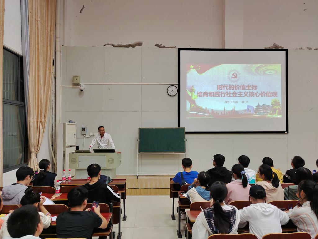 为引导同学们培育和践行社会主义核心价值观,提高同学们的综合素质,10月27日晚,公司社会主义核心价值观讲座在外语楼北110举行。该讲座由学工处处长蒋杰主讲,公司党总支副书记刘辰主持,辅导员曹喜燕、杨威、2020级全体员工参加。