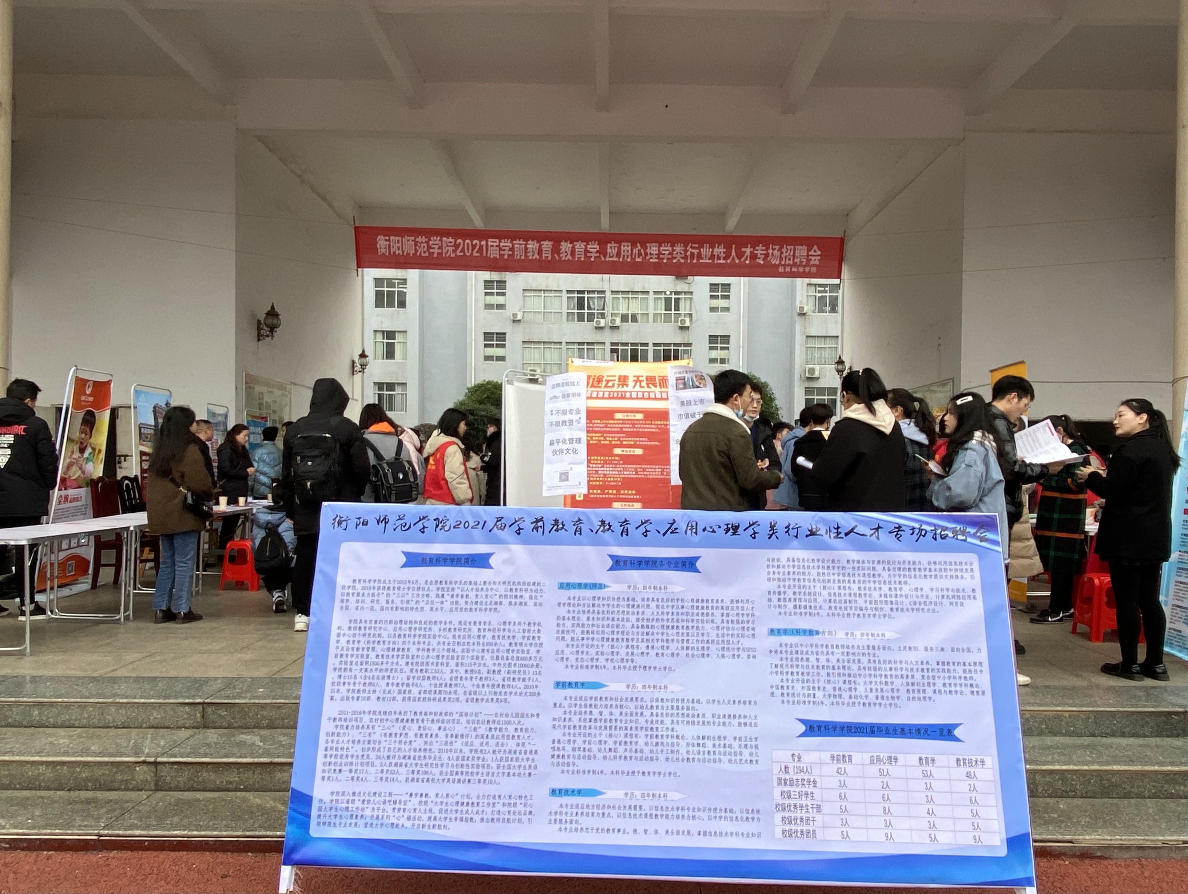 为搭建毕业生就业平台,拓宽毕业生就业渠道,12月8日上午,公司2021届学前教育、教育学、应用心理学类行业人才招聘会在文综楼大厅举办,公司150余名毕业生参加了本次人才招聘会。