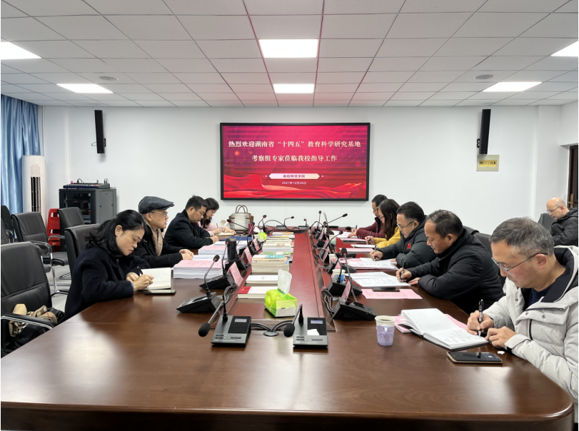 2021年12月28日下午,湖南省教育规划办组织专家对公司入围的湖南省“十四五”教育科学研究基地进行实地考察。基地主任皮修平,首席专家吴云鹏分别从公司基本情况、基地人员配备、研究基地依托机构、基地的规划与保障及衡阳师院的教师教育发展现状等方面对基地总体建设情况进行了汇报。与会专家对公司近年的快速发展、省教育科学研究基地现有基础和所做工作给予了肯定。