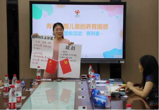 经过前期的充分准备,会议如期进行。会议与会人员有公司副教授尹洁及其团队成员、衡阳市第八中学专职心育教师邹桂兰,华新小学董事长周群意及华新小学管理团队、家庭教育指导师团队和五六年级家长代表们。会议内容包括周群意董事长致辞、四位分享型家长做主题分享、学习型家长提问与心得分享、尹洁副教授反馈答疑、全体家长现场正面管教活动:“两列表”等。