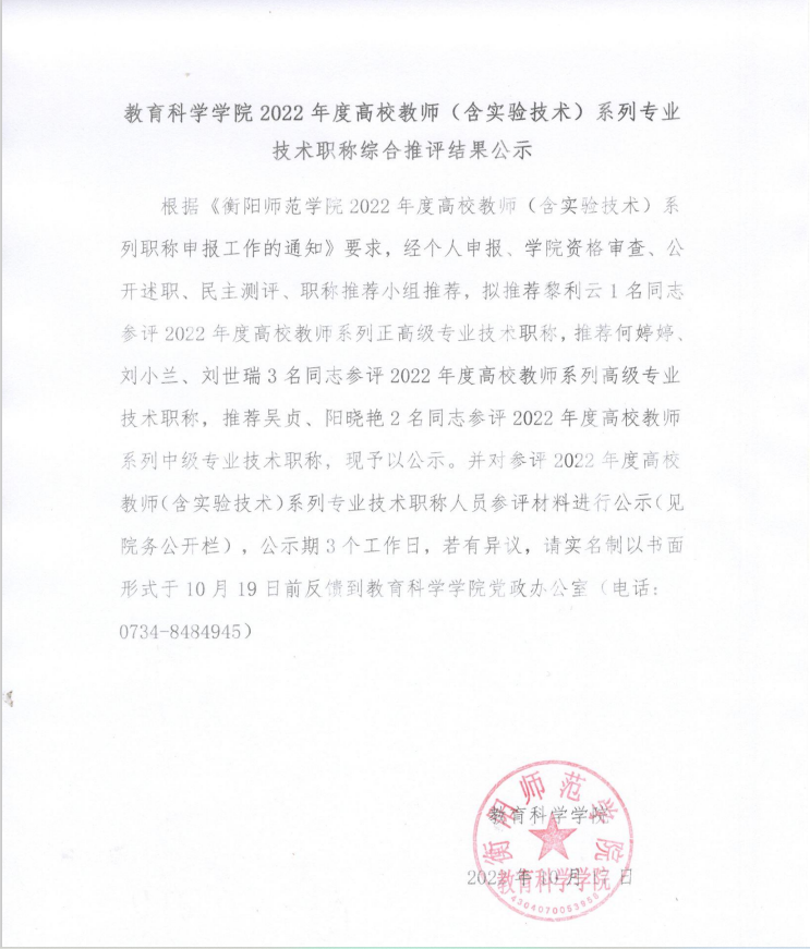 MK体育2022年度高校教师(含实验技术)系列专业技术职称综合推评结果公示