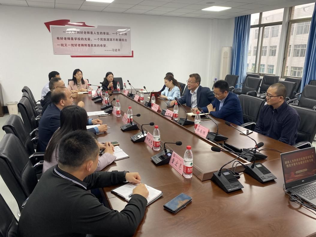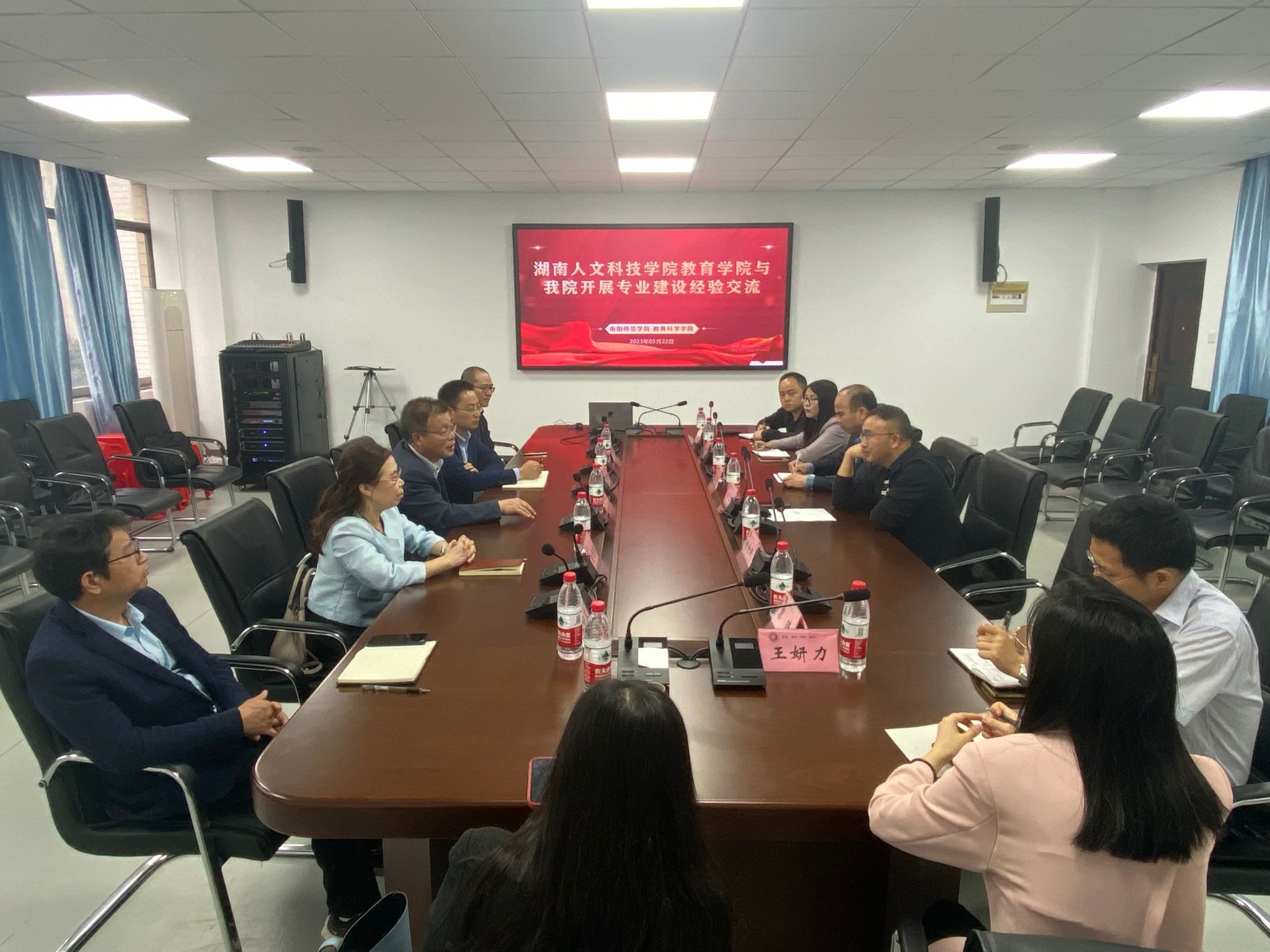 2023年5月22日上午,湖南人文科技公司MK体育来公司开展专业建设经验交流。经验交流会在行知楼412会议室举行,由公司郑志辉经理主持。湖南人文科技公司教育公司经理刘超良、副经理刘黎明、学前教育教研室主任赵艳红、应用心理学教研室陈高恒博士、历史学教研室主任王向文博士,公司郑志辉经理、副经理梁文明、心理系主任阳晓艳、教育学系主任王妍力、实验中心主任刘世瑞、学前教育专业负责人童宏亮、学前教育专业教师黎琦以及公司法公司历史学专业贺丽娟博士参加了经验交流会。