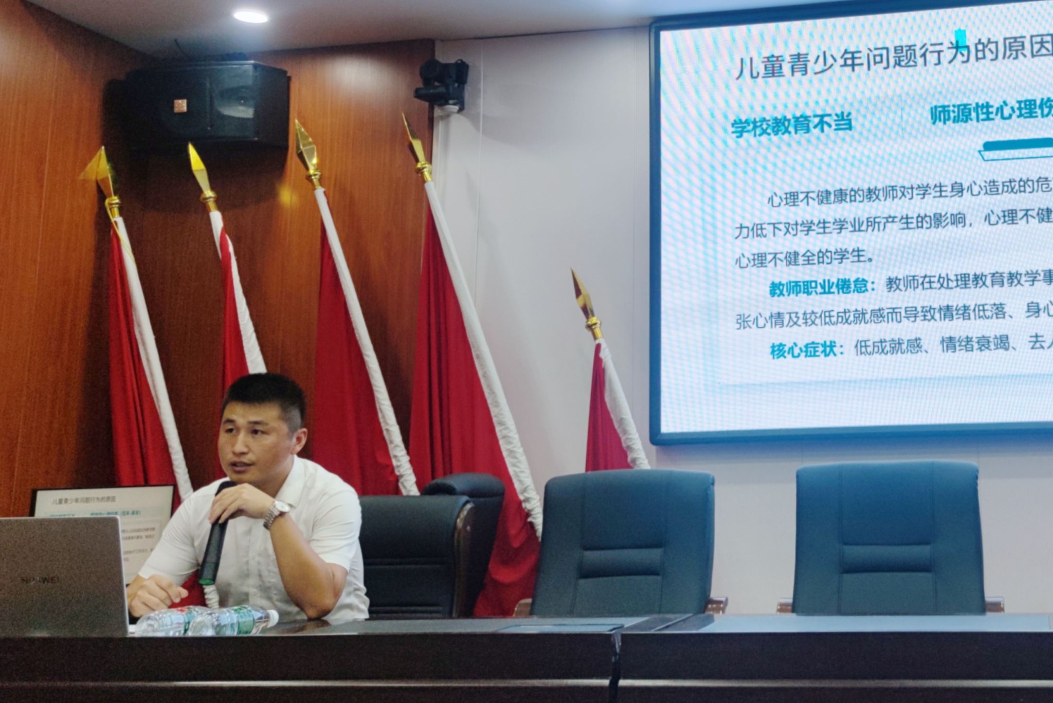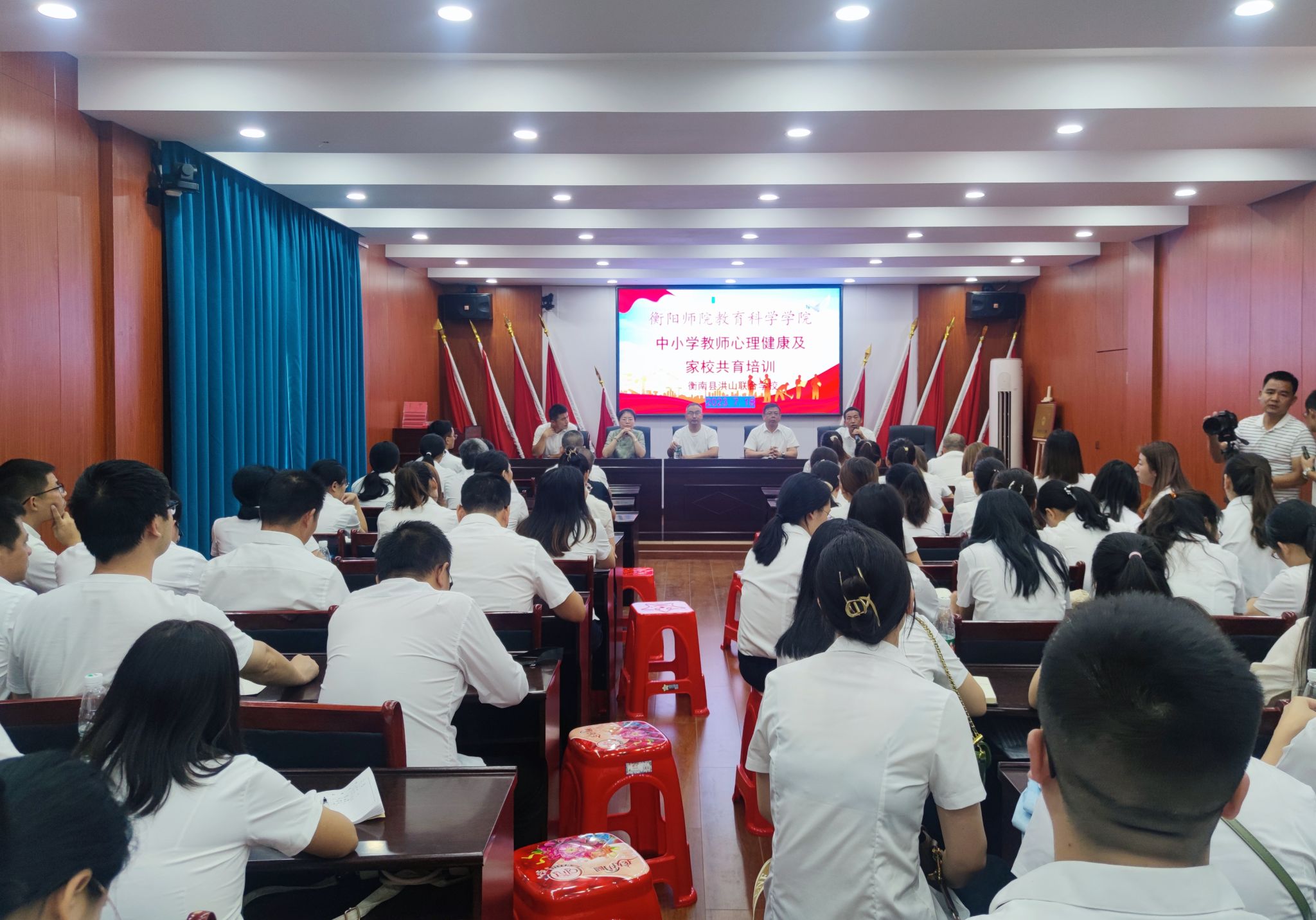 7月18日至19日,郑志辉经理、心理系尹洁副教授和刘罗老师前往衡南县,为衡南县洪山联合公司开展心理健康及家校共育培训,全镇各公司负责人、班主任和教师代表百余人参加培训,衡南县洪山联合公司董事长王小国、常务副董事长颜发乃出席本次活动。在开班典礼上,郑志辉经理对衡南县洪山联合公司对于心理健康教育工作的高度重视予以了充分肯定。