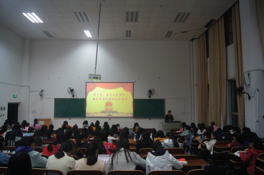10月26日晚,公司党总支副书记罗耒英于外语楼北301为新生们讲解党课培训的第七课——党员的标准与发展党员的程序。