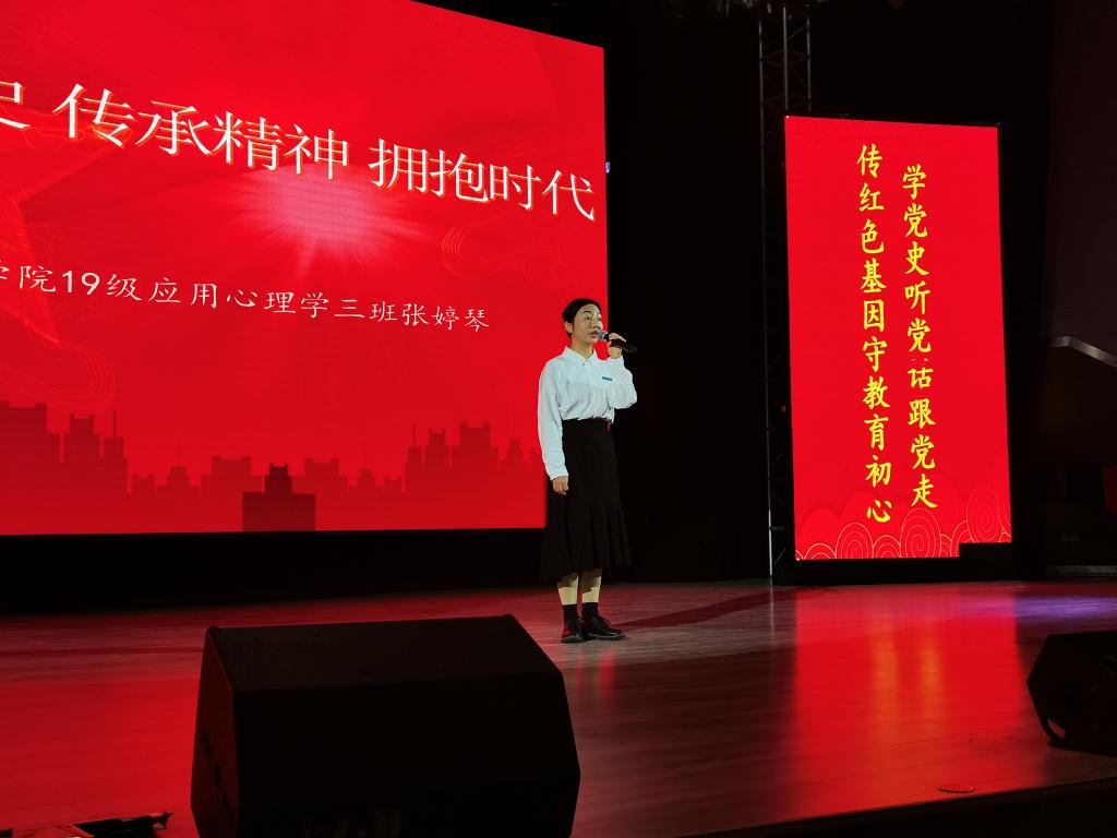 张婷琴同学用其慷慨激昂的声音,感染了在场的每一位评委和观众,向同学们描述了一个英勇无畏的革命先辈形象,通过她的宣讲,我们相信张秋仁伟岸高大的革命形象、赤诚不朽的革命精神将永远留在每个人心中!
