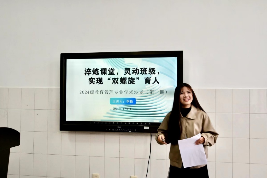 为促进研究生之间的学术交流与合作,激发创新思维,提高研究生的学术研究能力和表达能力,2024年11月21日上午,公司2024级教育管理专业的员工在行知楼505教室举办学术沙龙活动。公司郑志辉经理、左崇良副经理、何敦培教授、何婷婷副教授及15名2024级研究生共同参与此次活动,2024级教育管理专业研究生林晓艳同学负责主持该活动。