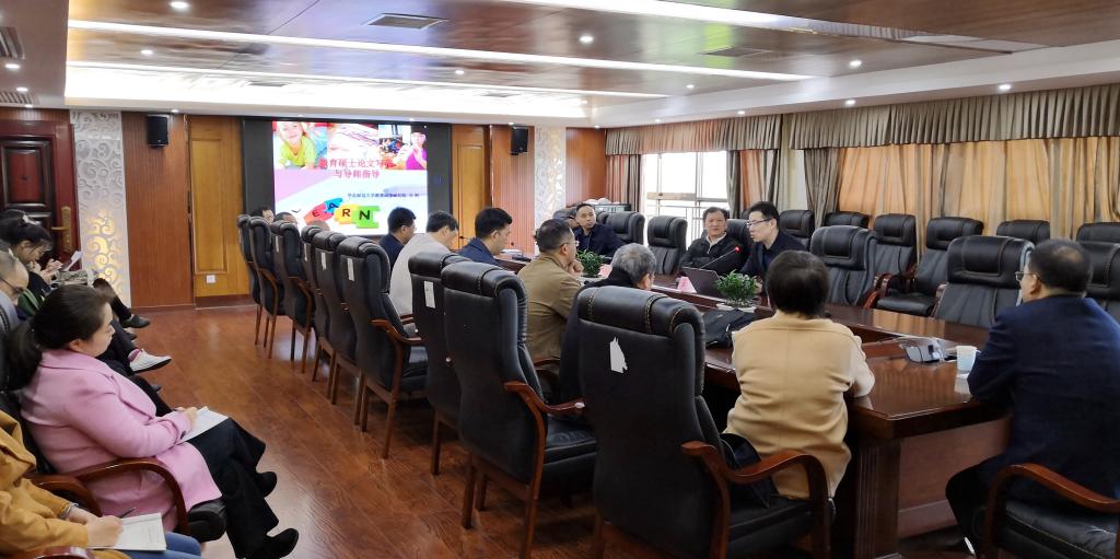 15日,吴刚教授以《教育硕士论文写作与导师指导》为题,在办公楼二会议室为公司教育硕士专业学位导师团队及师生代表带来了专题讲座。他从教育硕士论文的标准、选题、常见研究类型以及常用研究方法等多个方面系统介绍了教育硕士论文写作。