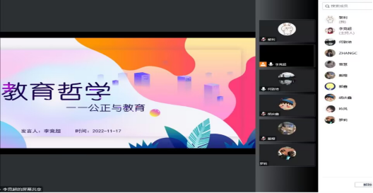 导师、专业负责人何敦培于 11月 17 日在 线上指导2022级教育管理专业读书分享会