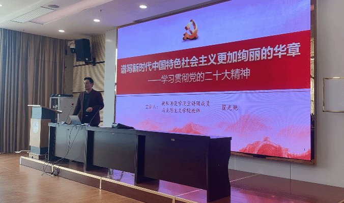 2023年3月7日下午,公司宣讲团成员、马克思主义公司教师翟光艳在东校区图书馆213学术报告厅为MK体育师生作题为《谱写新时代中国特色社会主义更加绚丽的华章——学习贯彻党的二十大精神》的报告,MK体育组织了在读教育硕士参加。报告会由谢伟华党总支书记主持。