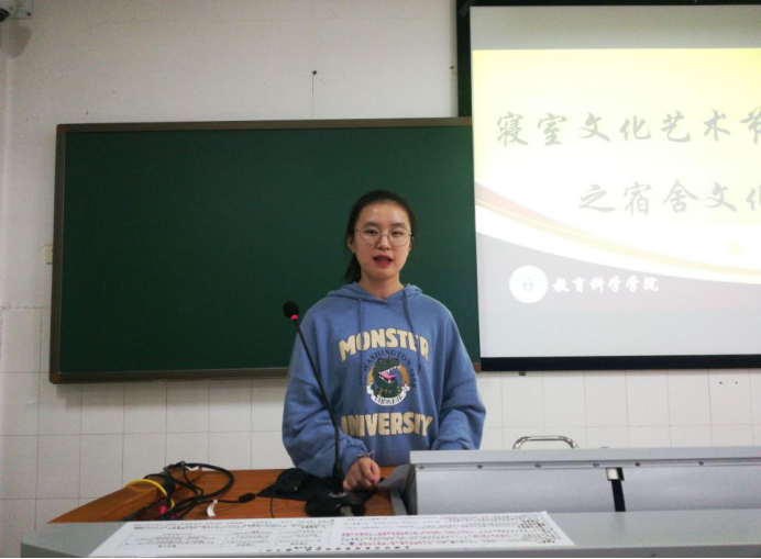 活动的开始,主持人进行了简单的开场,明确提出了此次活动的目的以及相关的活动规则和会场秩序,并宣布此次宿舍文化论坛正式开始,接下来各班的参赛宿舍便按照抽签顺序相继开始了精彩的宿舍文化展示。